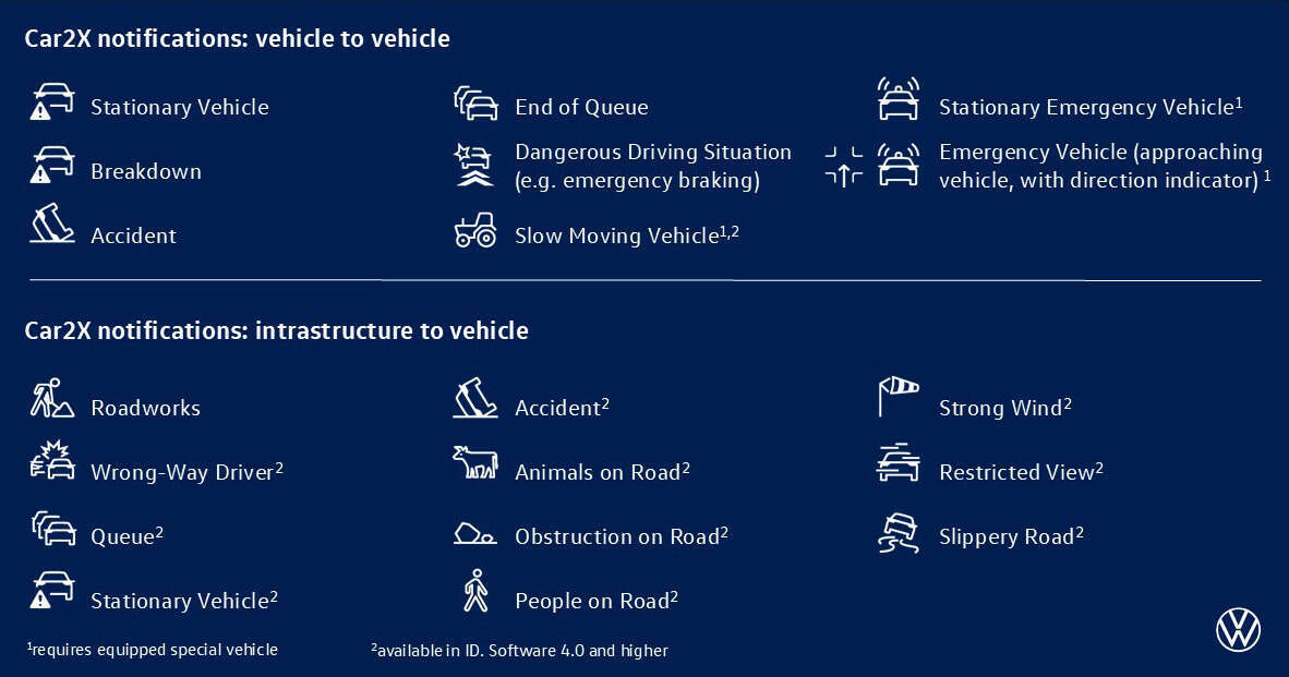 Volkswagen upozorňuje, že Car2X je navrhnutý ako otvorený systém. V budúcnosti by sa mali zapojiť nielen osobné autá, ale aj motocykle, autobusy, nákladné vozidlá či ďalšie prvky infraštruktúry.